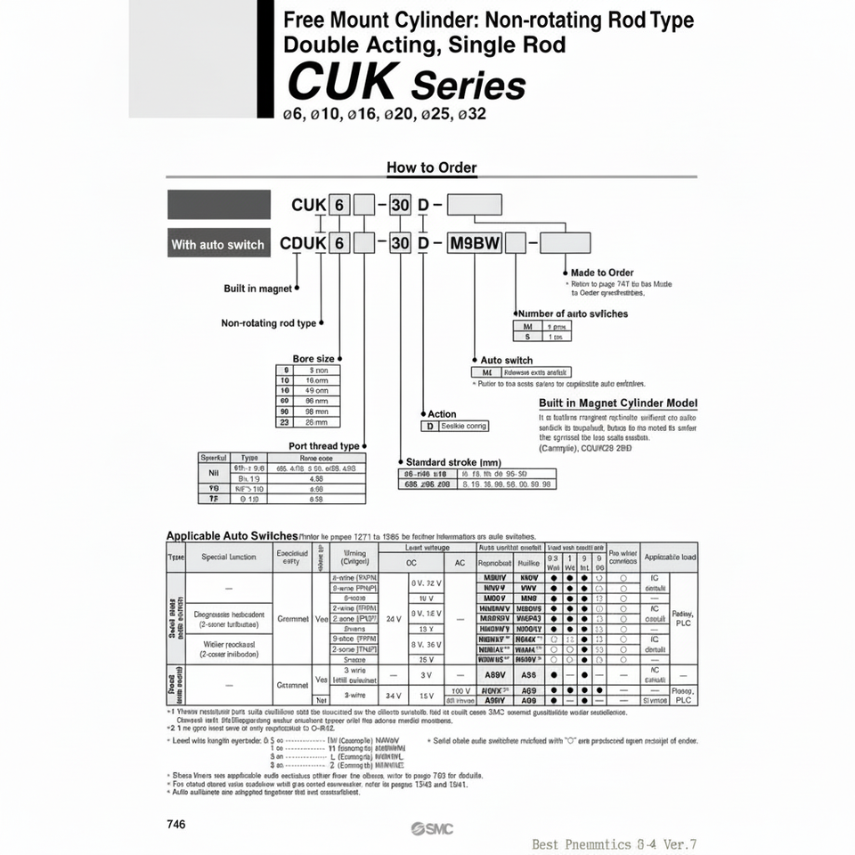 กระบอกลมยึดฟรีนิวเมติก CDUK25-10D ชิ้นส่วนนิวเมติก SMC