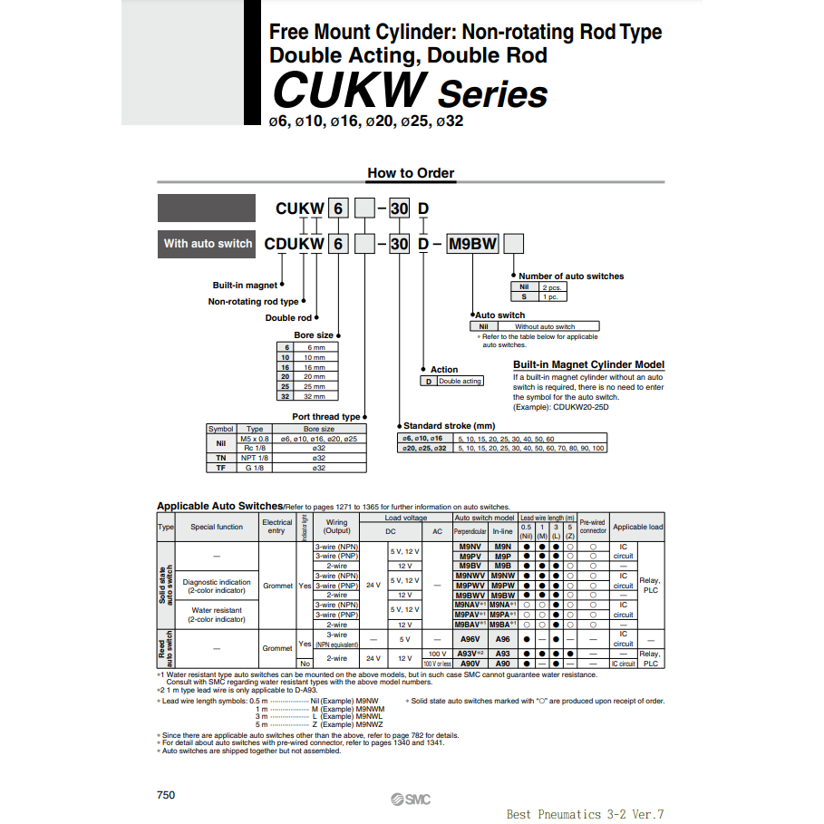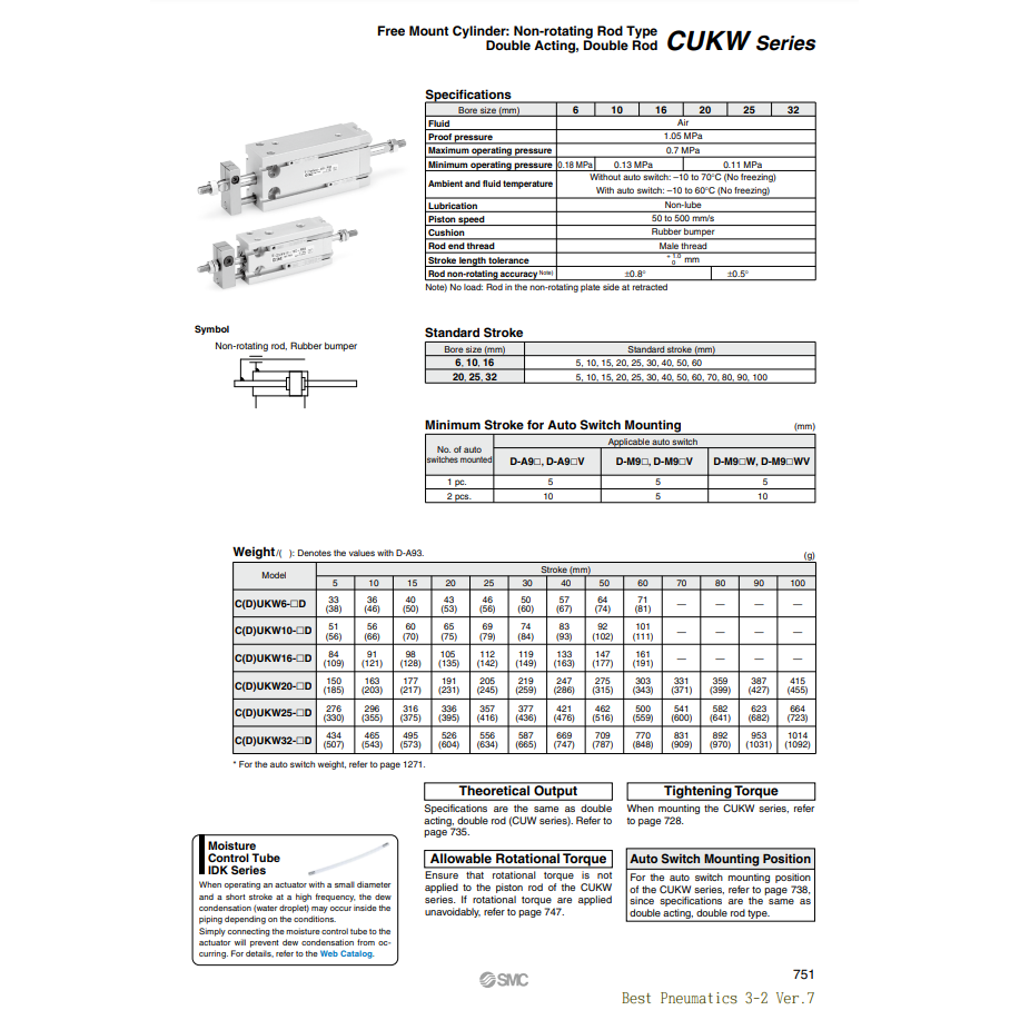 กระบอกลมยึดฟรีนิวเมติก CDUKW16-10D ชิ้นส่วนนิวเมติก SMC