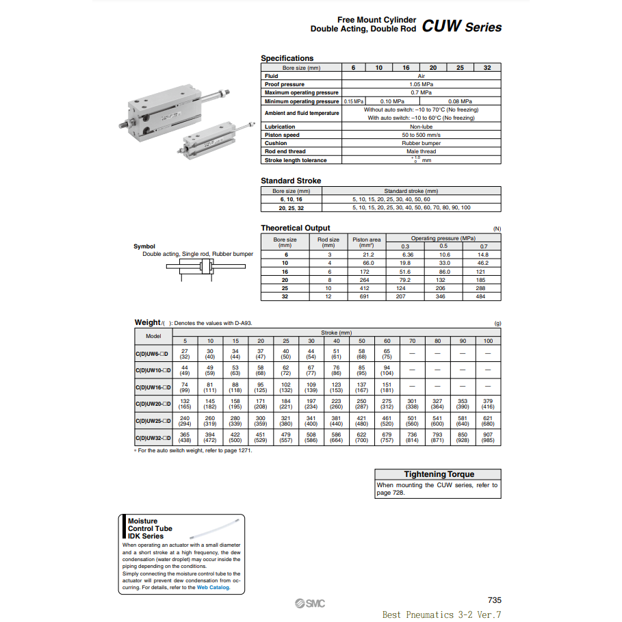 กระบอกลมยึดฟรีนิวเมติก SMC CDUW10-15D ชิ้นส่วนนิวเมติก