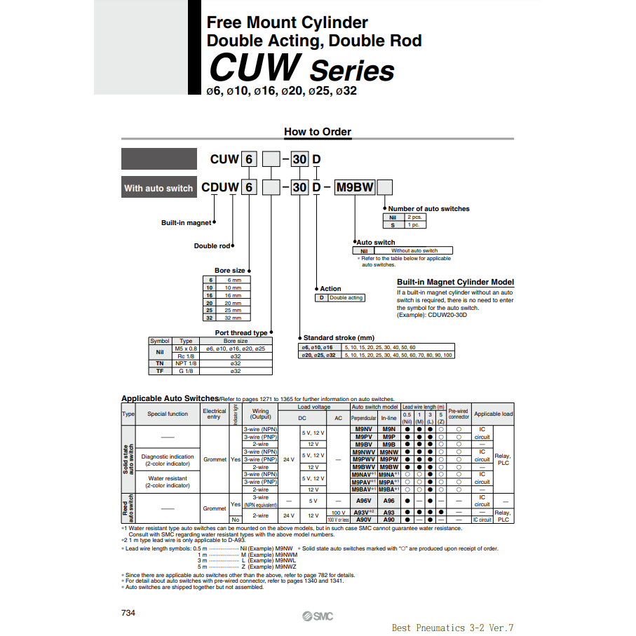 กระบอกลมยึดฟรีนิวเมติก SMC CUW16-10D ชิ้นส่วนนิวเมติก