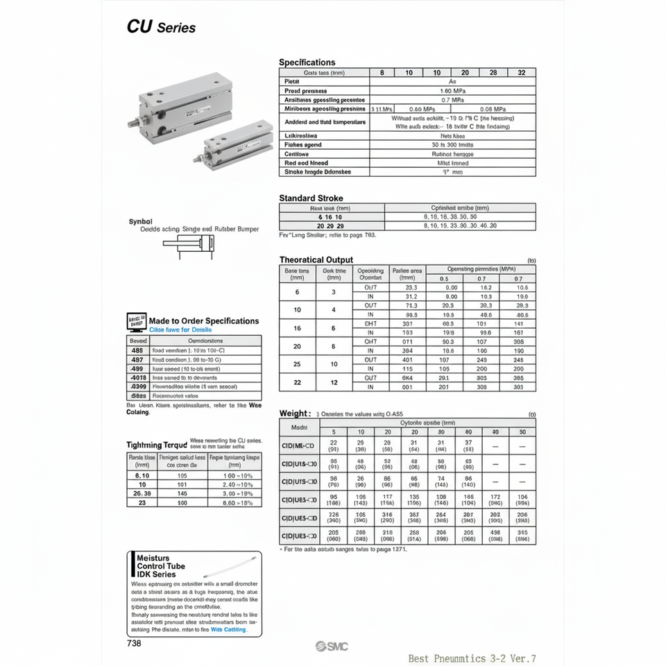 CU32-40D รุ่นกระบอกลมแบบยึดฟรีนิวเมติก SMC