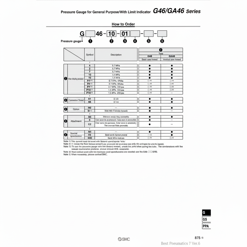 มาตรวัดความดัน G46-2-01-C แบบแมนนวลบริการเติมเต็มตัวแปร SMC