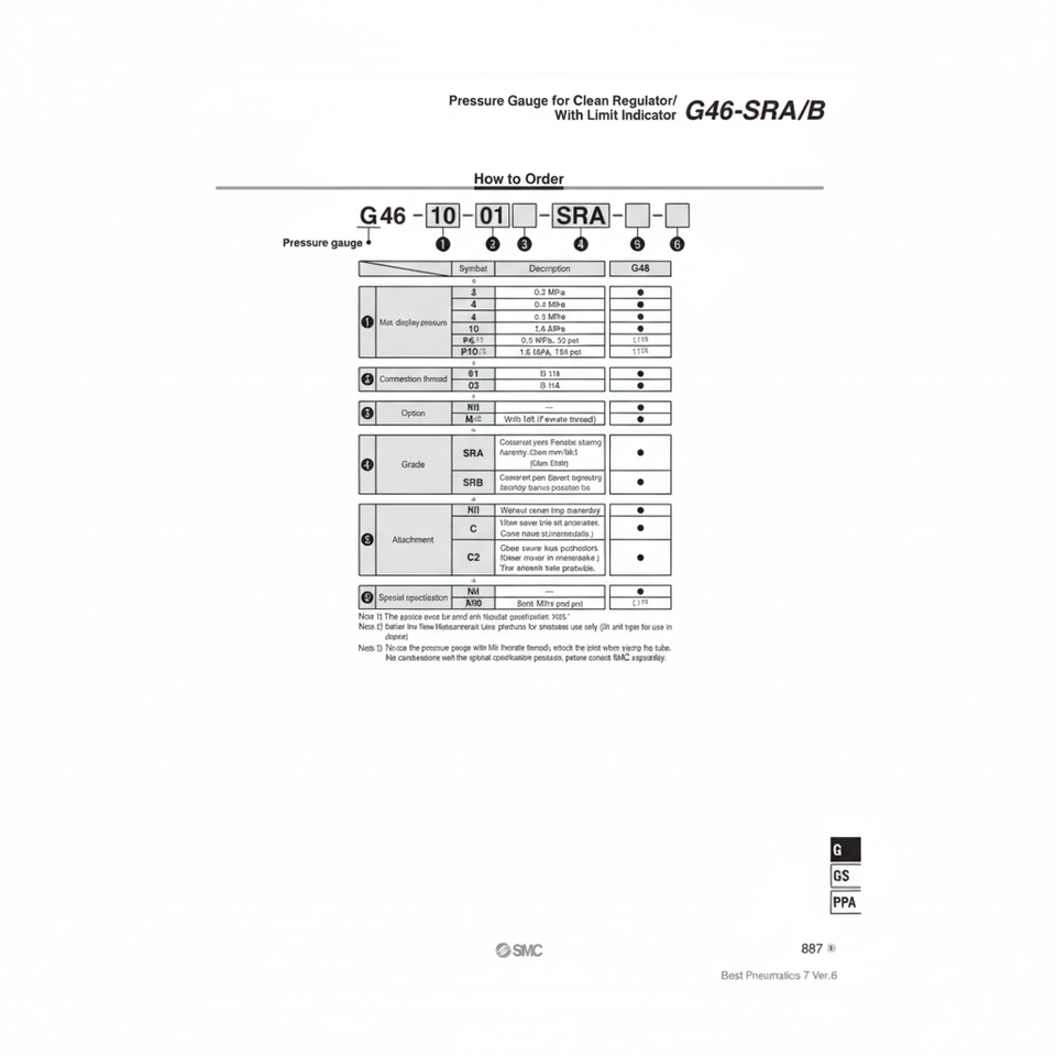 SMC Pneumatics G46-2-01-SRB-C Clean Regulator Pressure Gauge Manual Variant Fulfillment Service