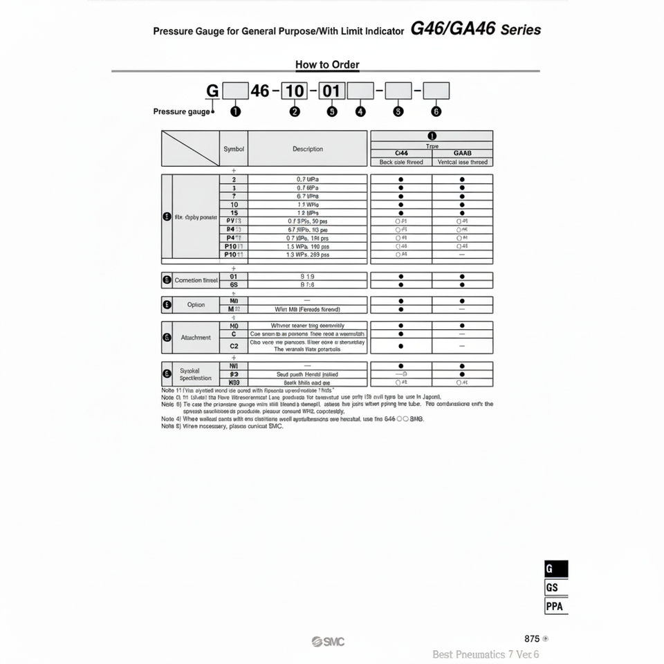 มาตรวัดความดัน G46-7-02-C แบบแมนนวลบริการเติมเต็มตัวแปร SMC