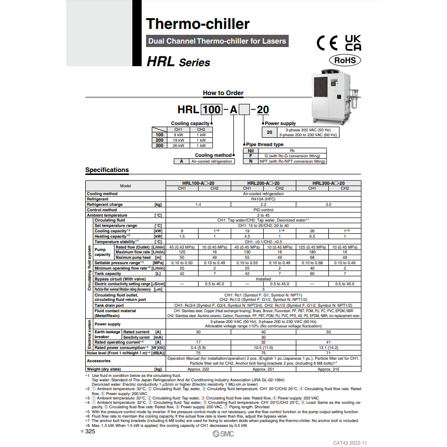 เครื่องทำความเย็นนิวเมติกส์ HRL300-A-20เทอร์โมชิลเลอร์อุปกรณ์ชิลลิงนิวเมติก SMC