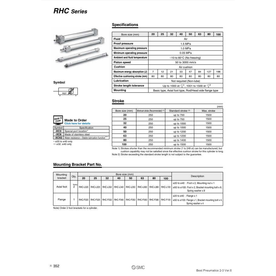 กระบอกลมแรงสูง RHCL40-430ชิ้นส่วนนิวเมติก SMC