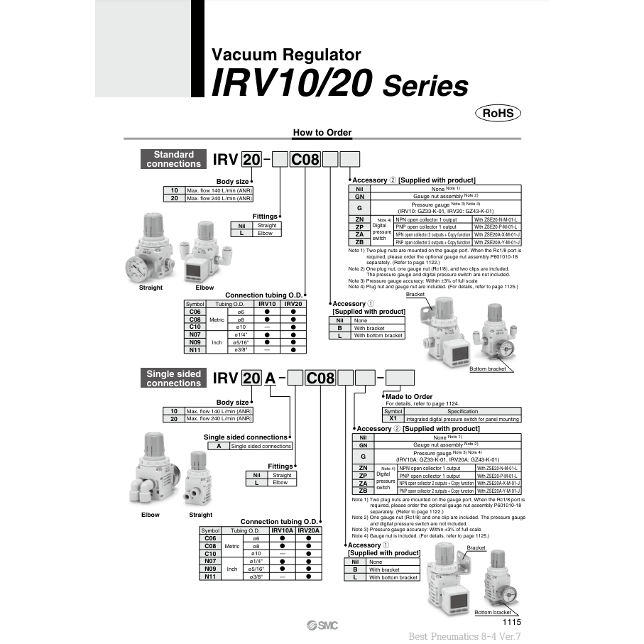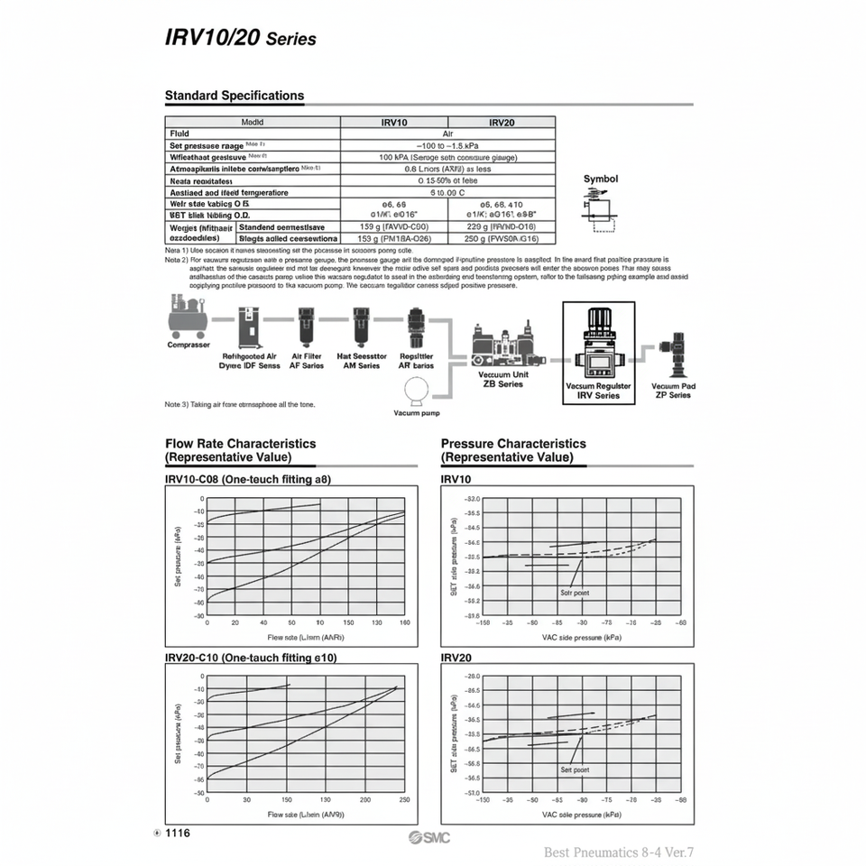 อุปกรณ์ควบคุมแรงดันประสิทธิภาพสูง IRV20-LC06B นิวเมติกส์ SMC