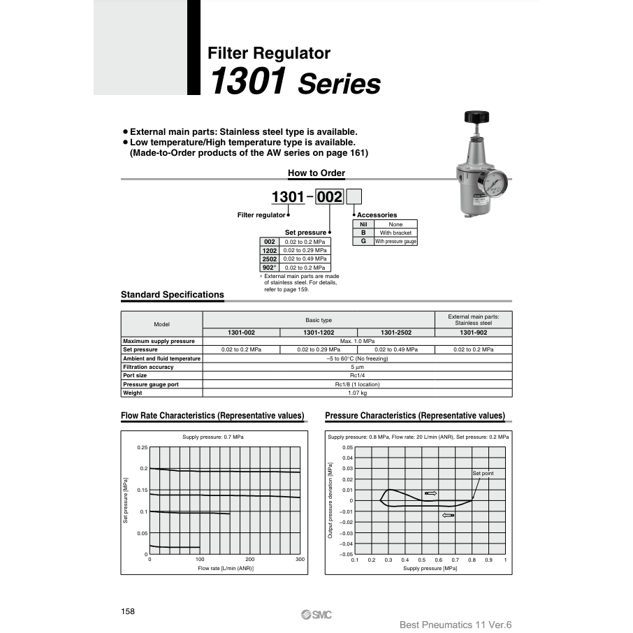 อุปกรณ์ควบคุมตัวกรอง1301-1202BG อุปกรณ์การกรองอุตสาหกรรมแบบนิวเมติก SMC