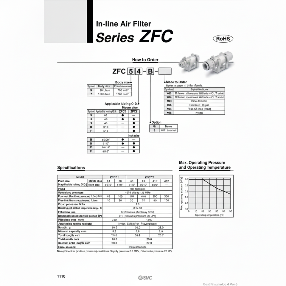 ZFC53-B กรองอากาศแบบอินไลน์สำหรับ pneumatics SMC