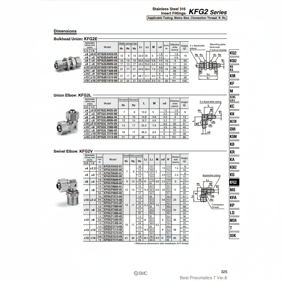 อุปกรณ์ใส่นิวเมติก SMC KFG2L0403-00ชิ้นส่วนนิวเมติก