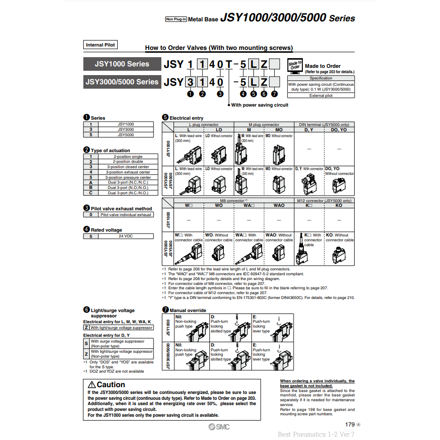 วาล์วควบคุมวาล์วโซลินอยด์ JSY3A40-5LZ นิวเมติก SMC