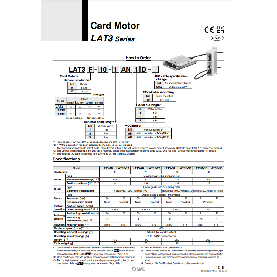 ประเภทผลิตภัณฑ์ SMC pneumatics LAT3M-50-1AN1 Card Motor Linear GUIDE
