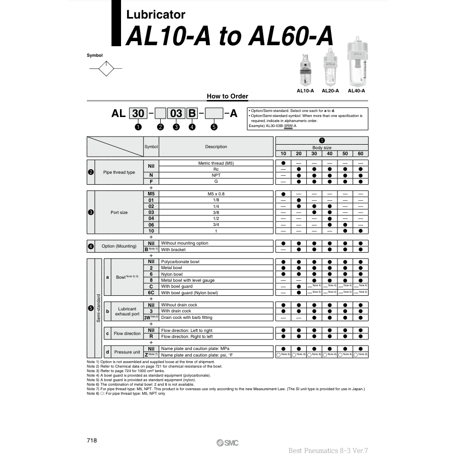 น้ำมันหล่อลื่นนิวเมติก SMC AL40-02B-R-A ชิ้นส่วนนิวเมติก