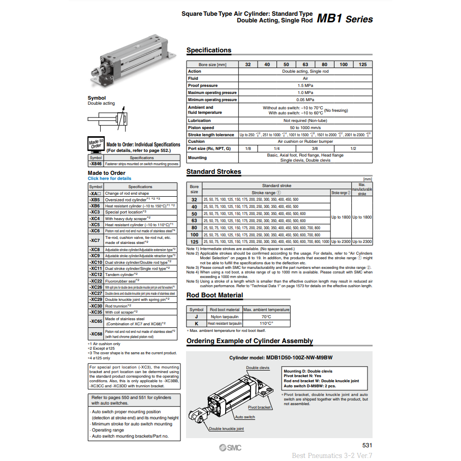 SMC pneumatics กระบอกลม MB1F50-250Z