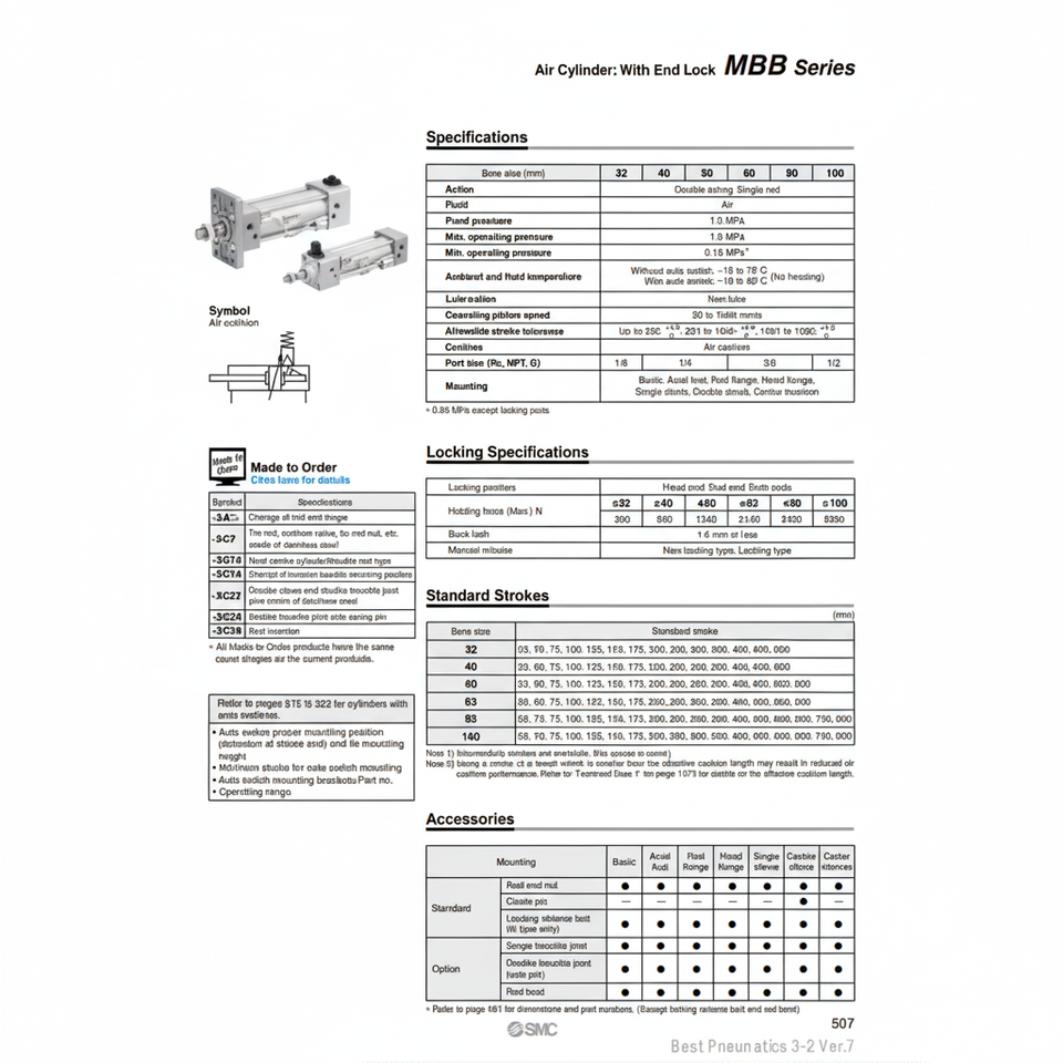 SMC pneumatics กระบอกลม MBBL40-230-HN