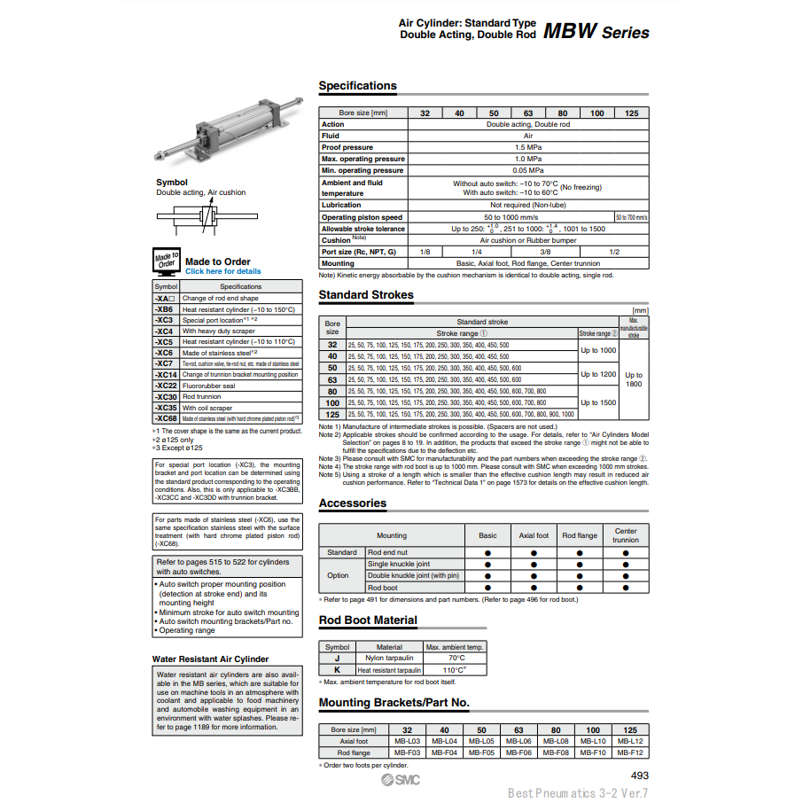 ชิ้นส่วนกระบอกลม MBWB32-300Z นิวเมติก SMC
