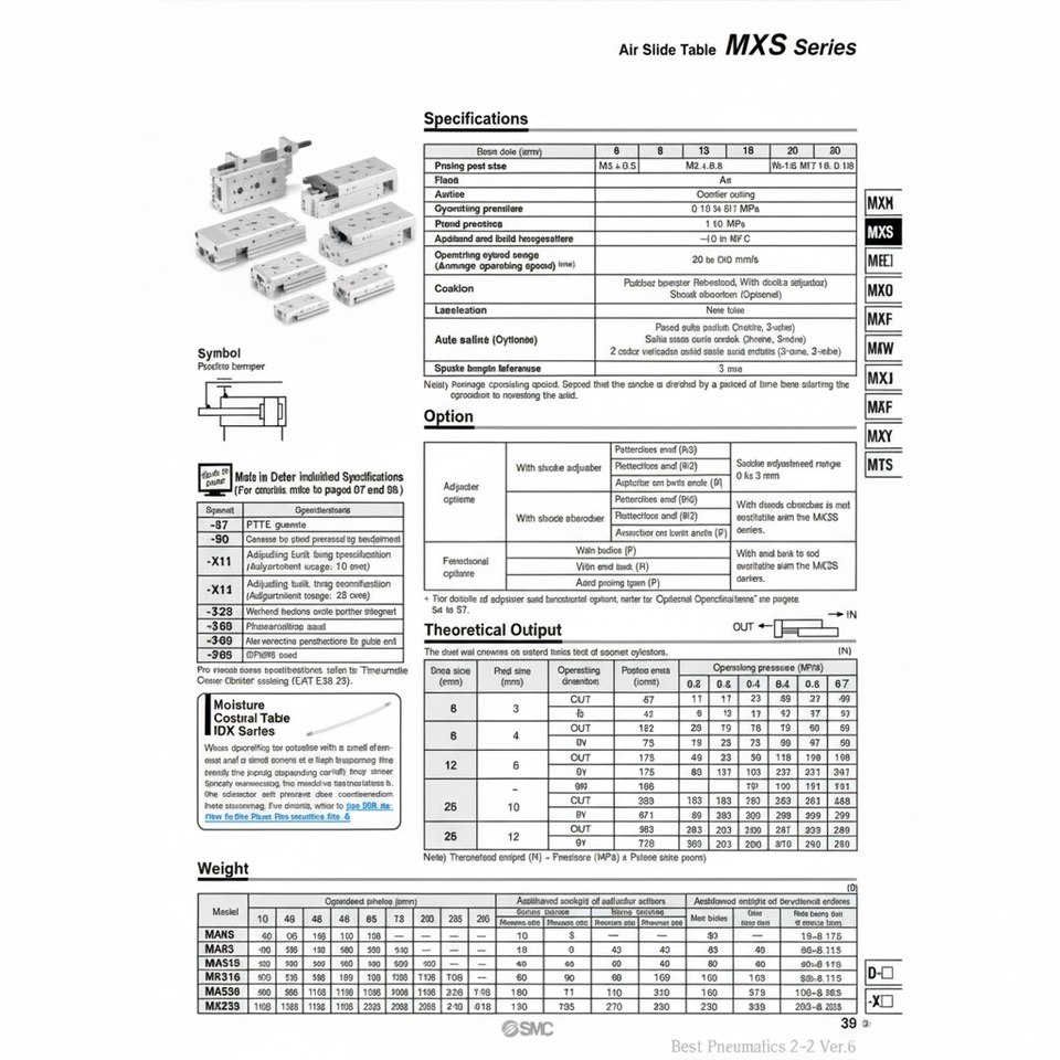 โต๊ะสไลด์ลม MXS16-20BT นิวเมติกส์ SMC