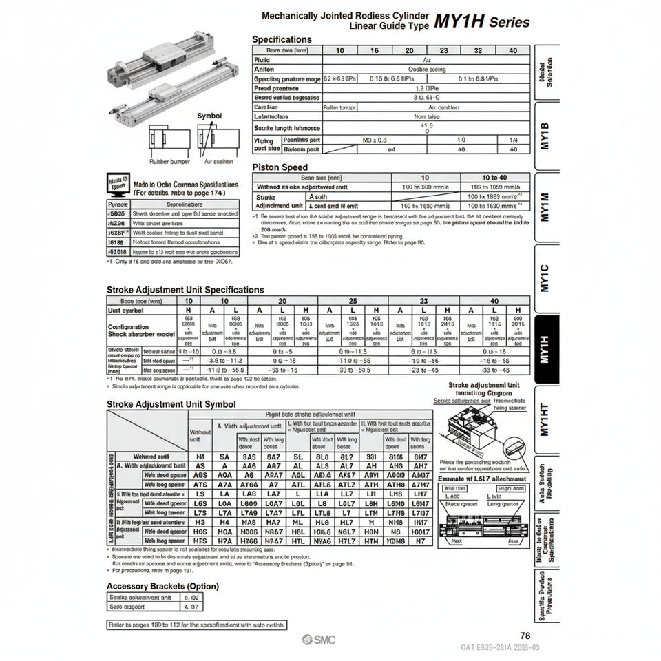 SMC นิวเมติกส์ MY1H25-280Z กระบอกไม่มีก้านชิ้นส่วนนิวเมติกส์ร่วม