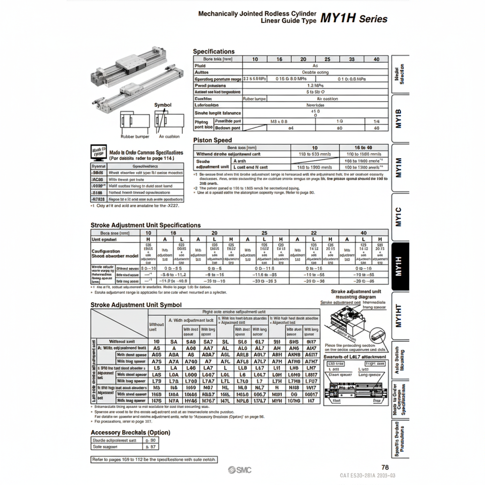 SMC นิวเมติกส์ MY1H40G-600Z กระบอกไม่มีก้านผลิตภัณฑ์ที่เชื่อมโดยใช้กลไก