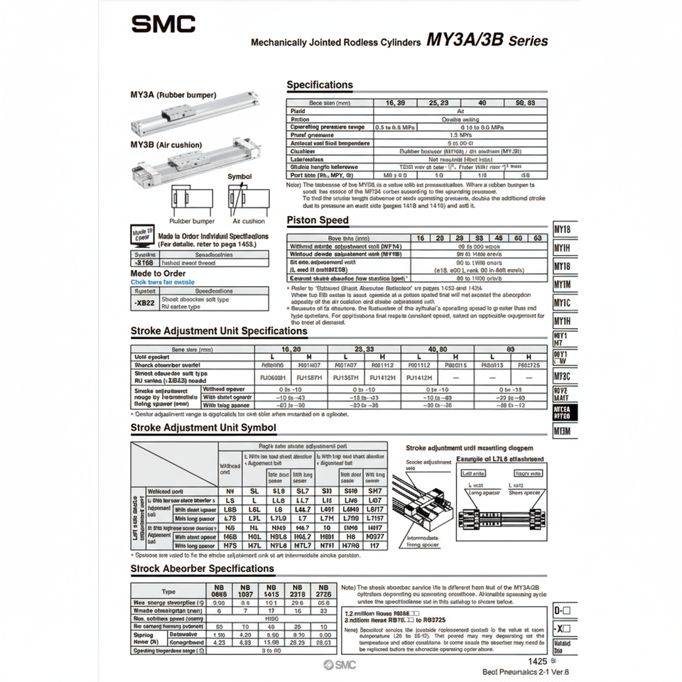 SMC นิวเมติกส์ MY3B20-200กระบอกไม่มีก้านชิ้นส่วนนิวเมติกส์ร่วม