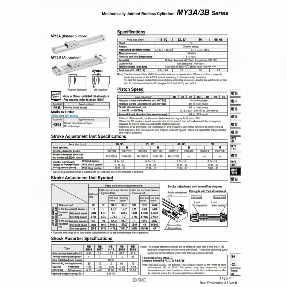 SMC นิวเมติกส์ MY3B20-300L6L กระบอกไม่มีก้านผลิตภัณฑ์ที่เชื่อมโดยใช้กลไก