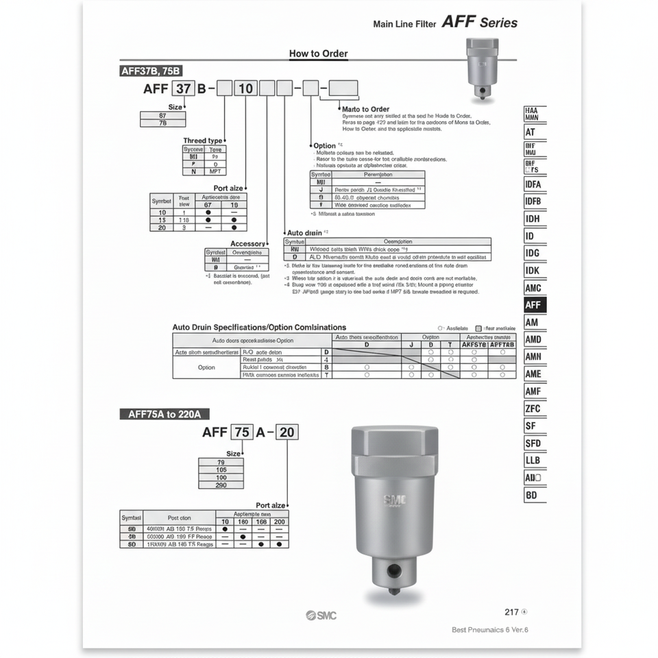 รุ่นตัวกรองลม AFF37B-14B ผลิตภัณฑ์ตัวกรองอากาศ SMC pneumatics