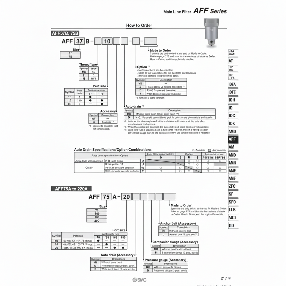 รุ่นตัวกรองลม AFF2C-02BC-T ผลิตภัณฑ์ตัวกรองอากาศ SMC pneumatics