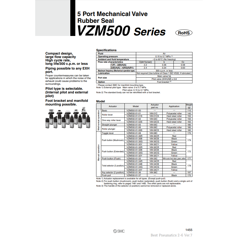 VZM550-01-00วาล์วควบคุมแบบนิวเมติก SMC