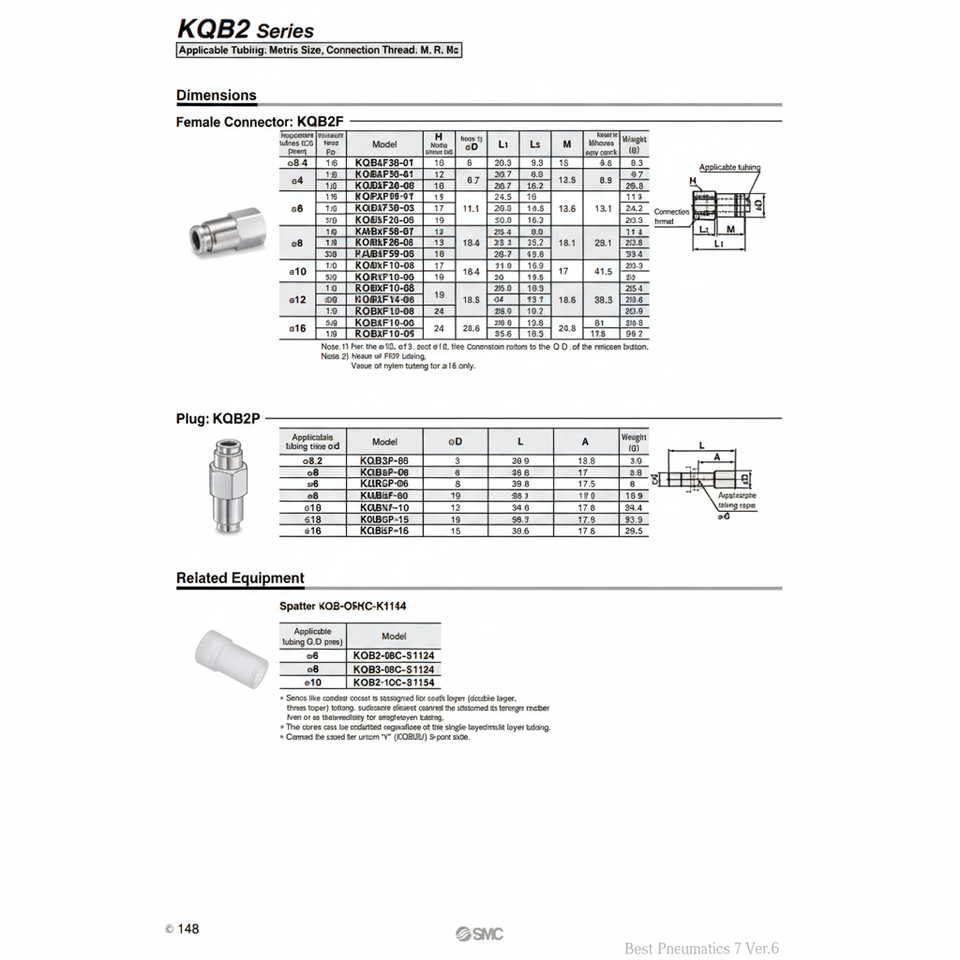นิวเมติก SMC นิวเมติกส์อุปกรณ์โลหะแบบสัมผัสเดียว KQB2F04-01ชิ้นส่วนนิวเมติก