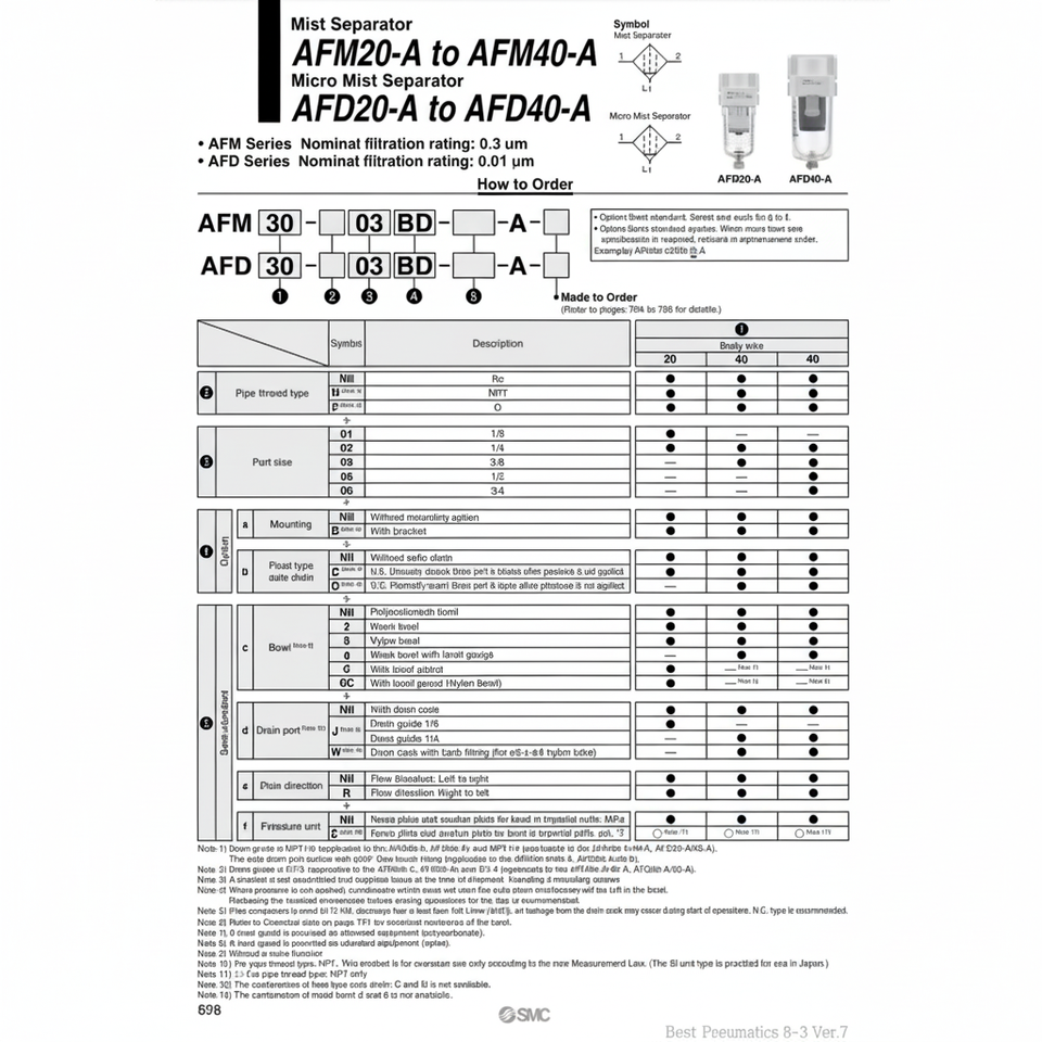 เครื่องแยกหมอกขนาดเล็ก AFD20-02B-A ผลิตภัณฑ์ที่กรองอากาศนิวเมติก SMC