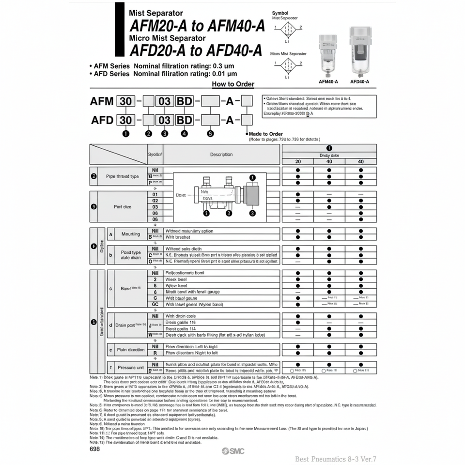 ตัวแยกละอองน้ำ AFD30-03-R-A เครื่องกรองอากาศแบบไมโครนิวเมติก SMC