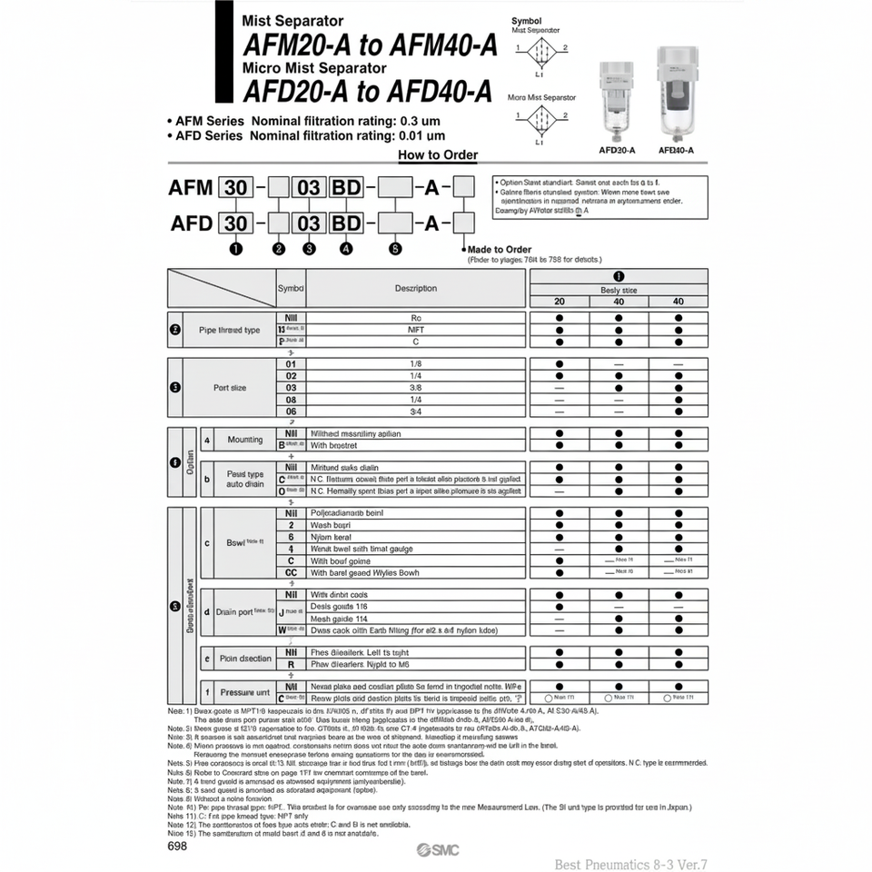 ตัวแยกละอองน้ำขนาดเล็ก AFD30-02-A เครื่องกรองอากาศแบบ pneumatics SMC