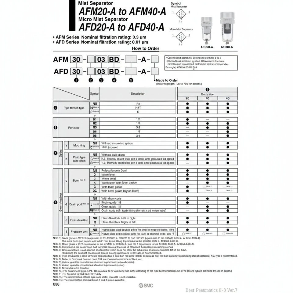 ตัวแยกละอองน้ำขนาดเล็ก AFD40-04D-2-A เครื่องกรองอากาศแบบ pneumatics SMC