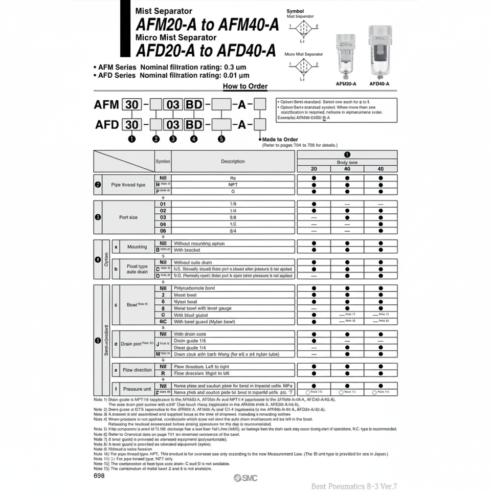 เครื่องแยกหมอกขนาดเล็ก AFD40-04-A ผลิตภัณฑ์ที่กรองอากาศนิวเมติก SMC
