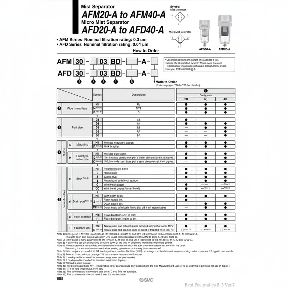 AFD20-01C-C-A ตัวกรองอากาศแบบหมอกขนาดเล็กระบบนิวเมติก SMC
