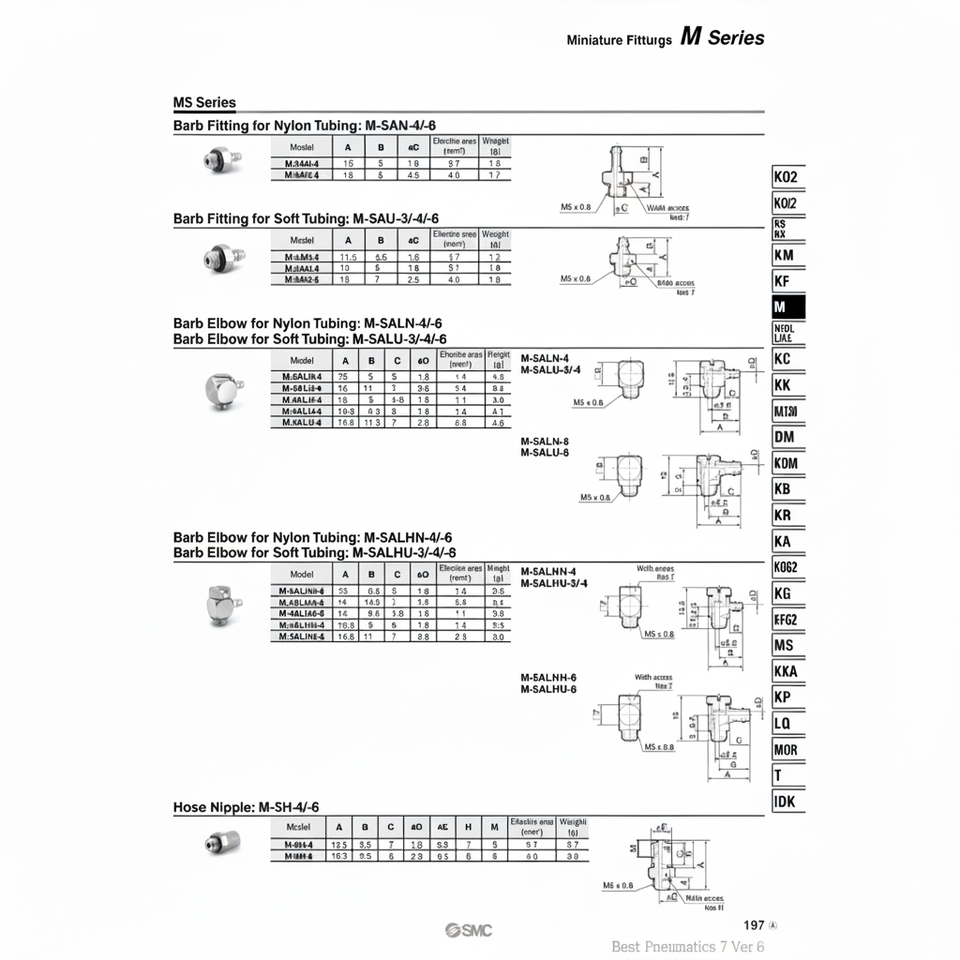 ชิ้นส่วนนิวเมติกส์ SMC นิวเมติกส์ท่อ M-5H-4ขนาดเล็ก