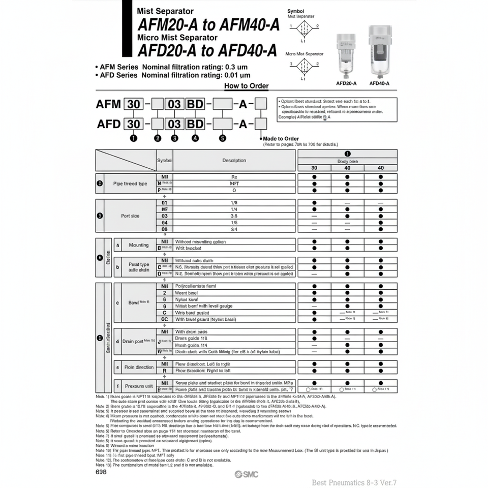 โมเดลตัวแยกหมอกแบบนิวเมติก SMC AFM40-03C-R-A ชิ้นส่วนนิวเมติกส์คุณภาพสูง