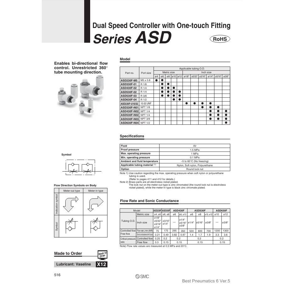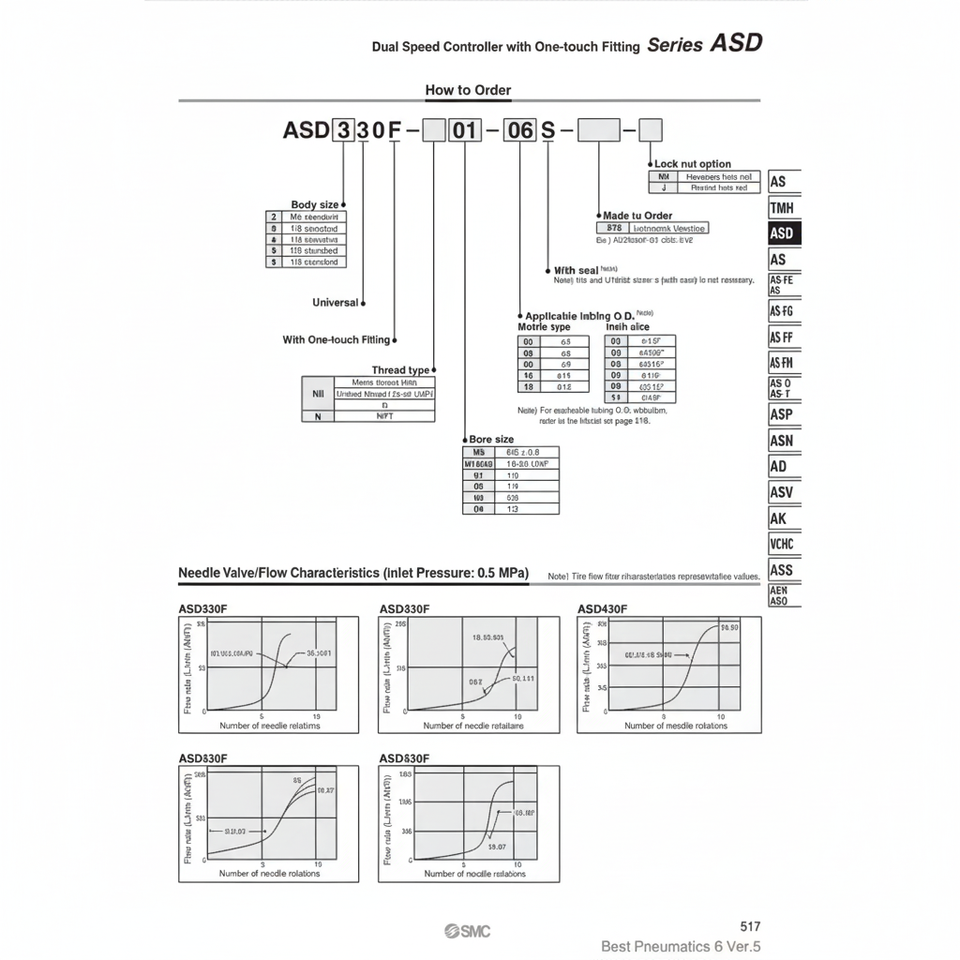 SMC นิวเมติกส์เข็มวาล์ว-ASD630F-04-10S ควบคุมความเร็ว