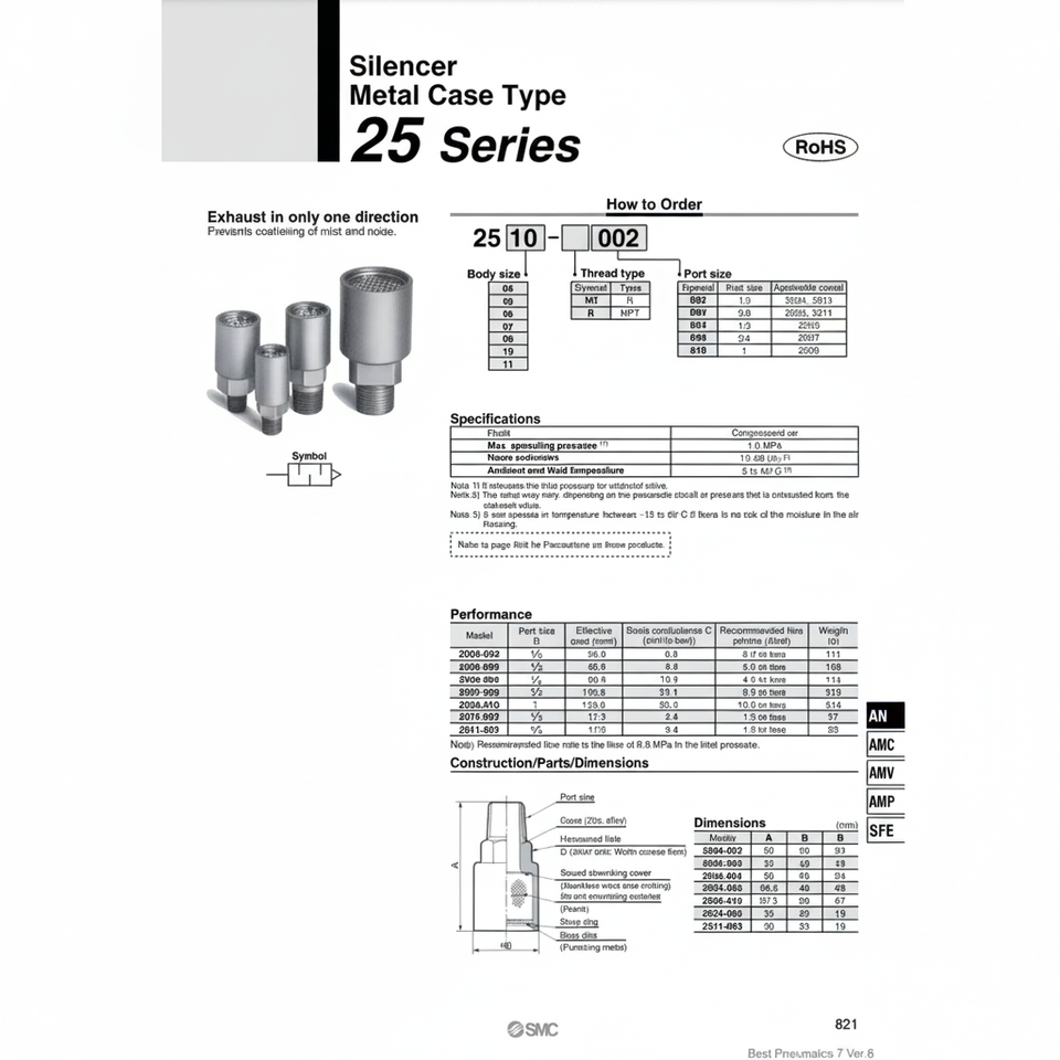 SMC Pneumatics Noise Reduction Devices Metal Case 2508-010
