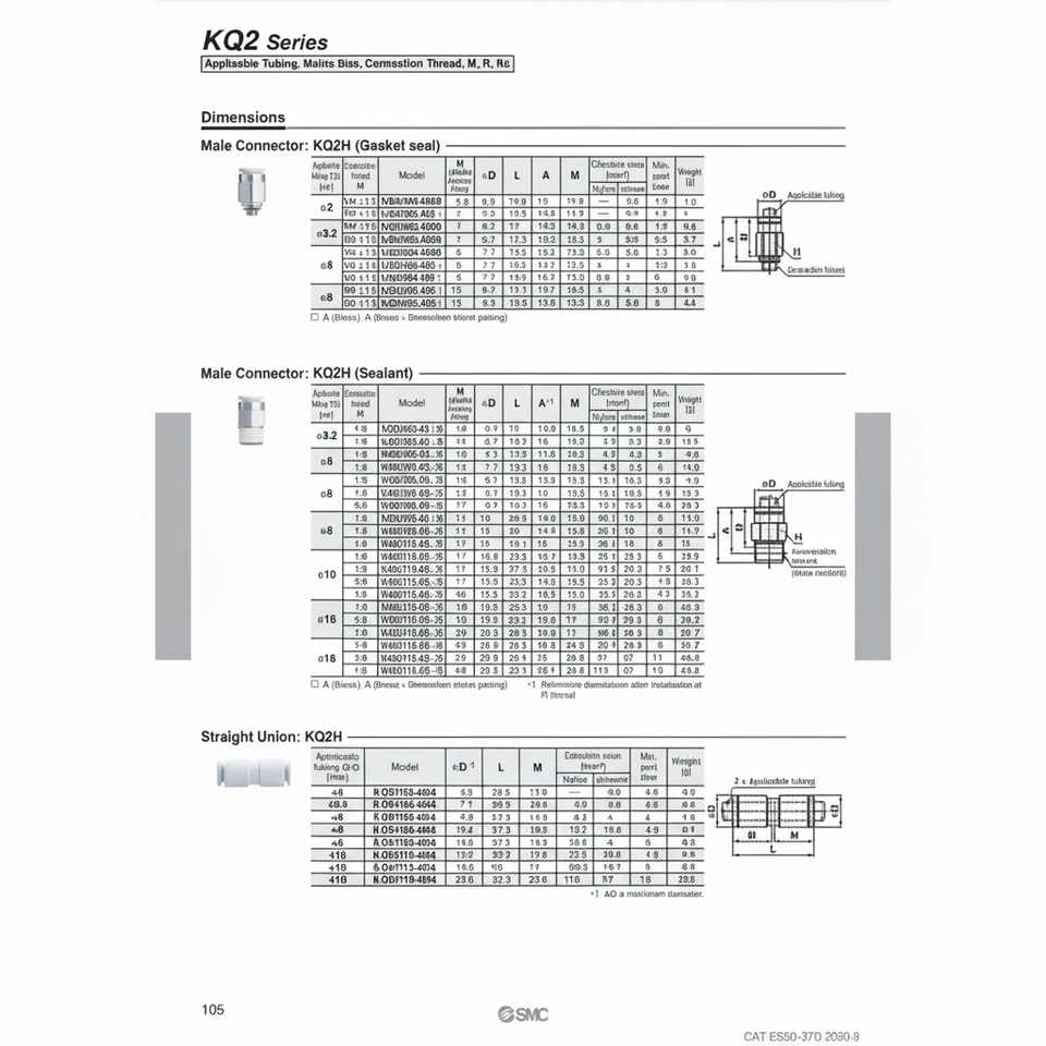 นิวเมติกส์แบบสัมผัสเดียว KQ2H06-00A ชิ้นส่วนนิวเมติก SMC