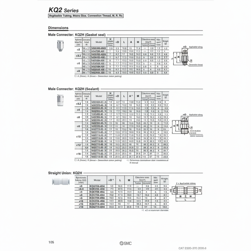 นิวเมติกส์แบบสัมผัสเดียว KQ2H08-01AS ชิ้นส่วนนิวเมติก SMC