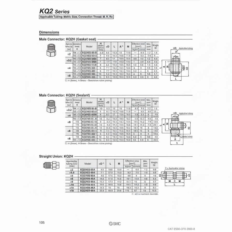 นิวเมติกส์แบบสัมผัสเดียว KQ2H10-02AS ชิ้นส่วนนิวเมติก SMC