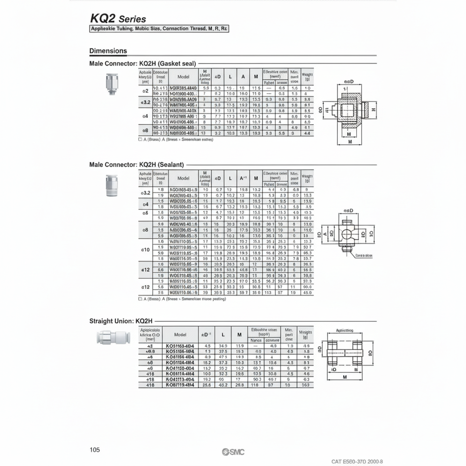 นิวเมติกส์แบบสัมผัสเดียว KQ2H12-00A ชิ้นส่วนนิวเมติก SMC