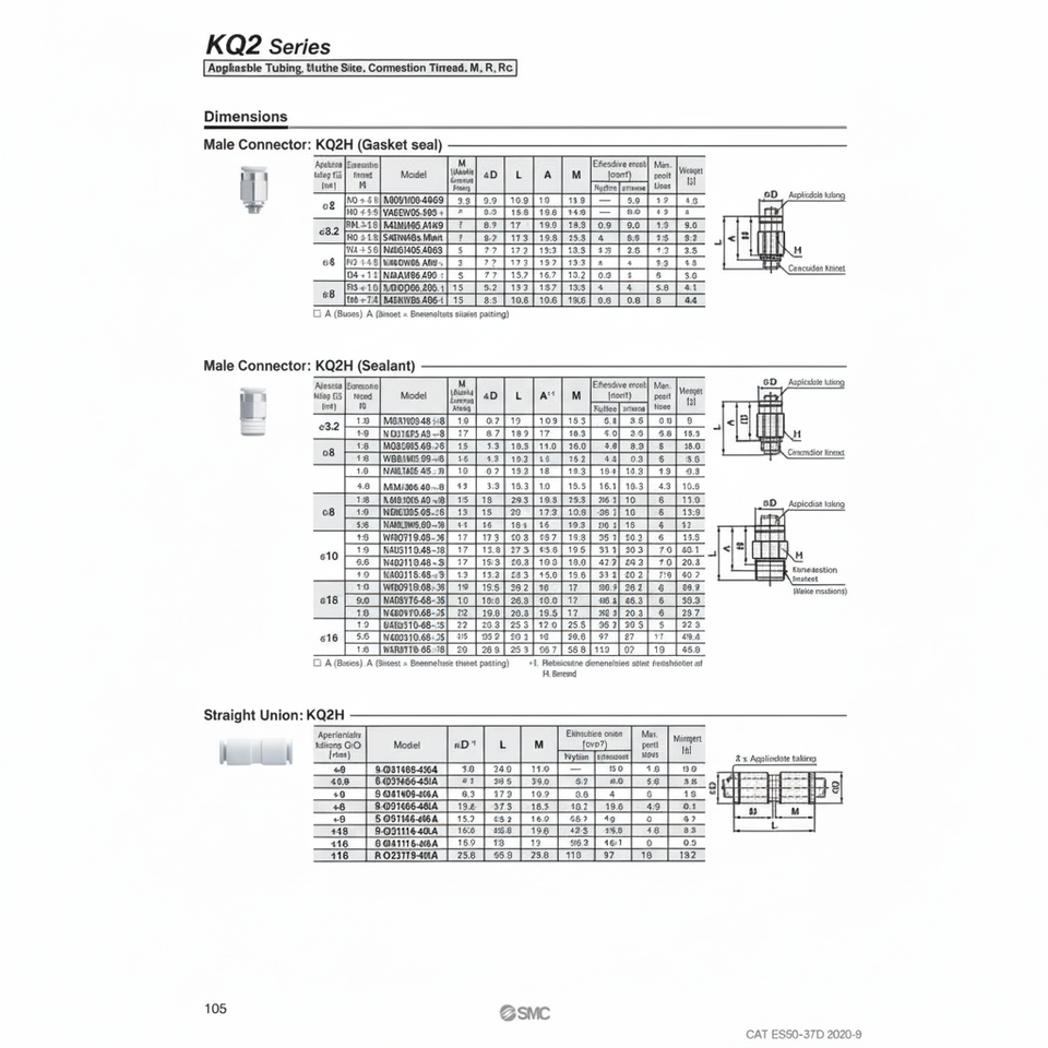 นิวเมติกส์แบบสัมผัสเดียว KQ2H12-02NS ชิ้นส่วนนิวเมติก SMC