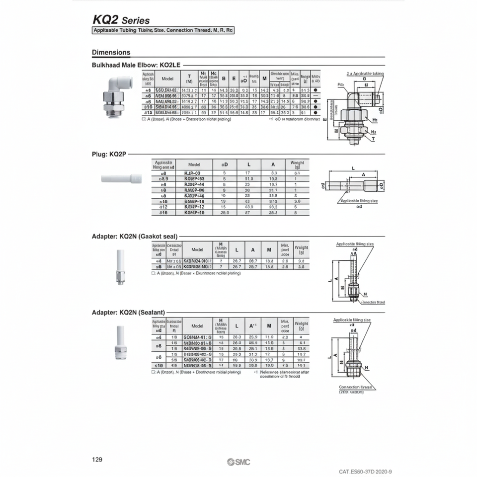 นิวเมติกส์แบบสัมผัสเดียว KQ2LE12-00N ชิ้นส่วนนิวเมติก SMC