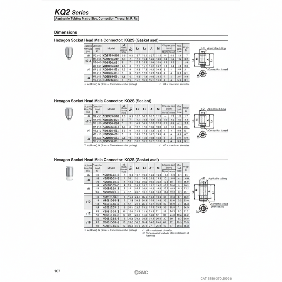 นิวเมติกส์แบบสัมผัสเดียว KQ2S12-04AS ชิ้นส่วนนิวเมติก SMC