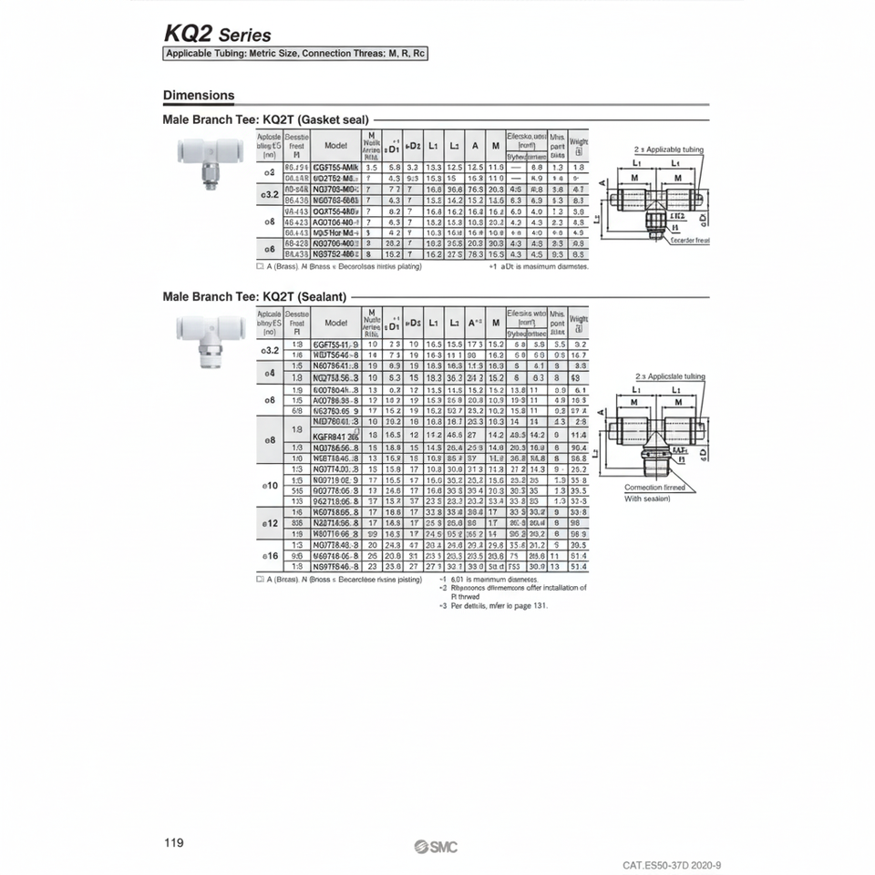 นิวเมติกส์แบบสัมผัสเดียว KQ2T12-04NS ชิ้นส่วนนิวเมติก SMC