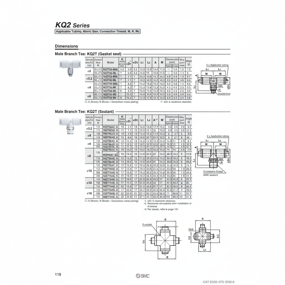 นิวเมติกส์แบบสัมผัสเดียว KQ2T12-04AS ชิ้นส่วนนิวเมติก SMC
