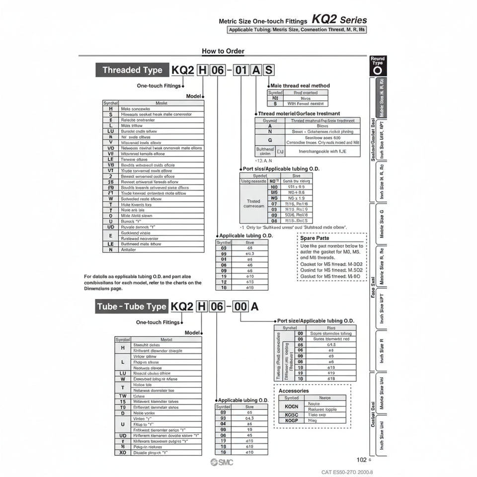 นิวเมติกส์แบบสัมผัสเดียว KQ2ZD08-02AS ชิ้นส่วนนิวเมติก SMC