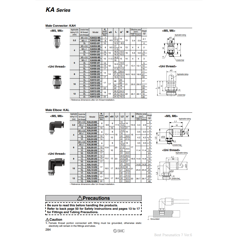 อุปกรณ์นิวเมติกแบบสัมผัสเดียวสำหรับชิ้นส่วนนิวเมติก KAL10-U01